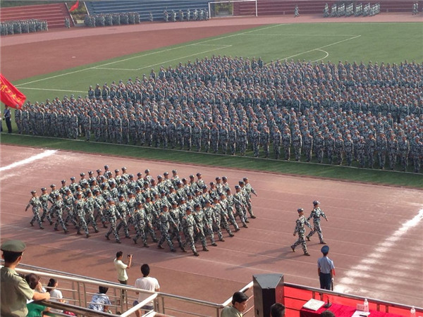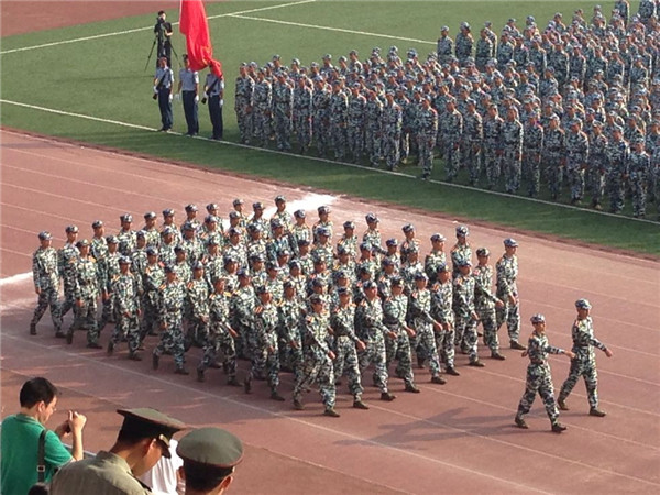 计通新学员们经过汗水与泪水的洗礼,意志与毅力的考验。今天,他们精神抖擞,以整齐的步伐、嘹亮的口号和昂扬的精神面貌展现了军训成果。
