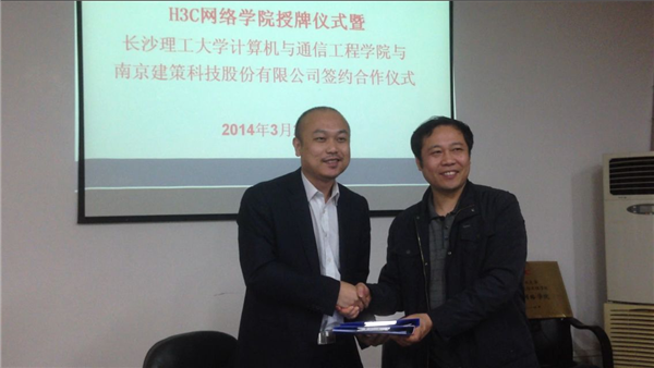 签约仪式由我院党委副书记方碧波主持。李峰院长代表我院与南京建策股份有限公司签订了合作协议,同时与H3C网络学院进行了授牌仪式。