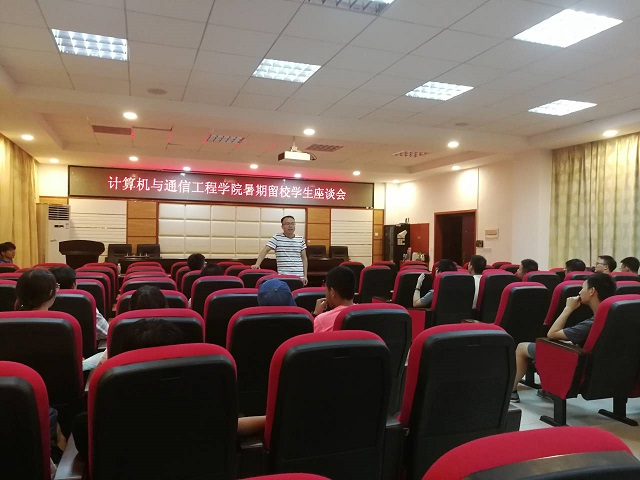 7月28日晚,在理科楼B311会议室,王建新主持召开了计通学院暑期留校考研学生会议,王建新对同学们冒着高温酷暑坚持备考的精神表示肯定和鼓励,提醒大家在认真学习的同时,要安全备考,注意防暑降温,合理调整作息安排,做到劳逸结合;科学备考,把握复习节奏,提高复习的效果;同时多与同学、老师沟通交流,共享考研信息相互,学会寻求指导和帮助。在会上,为了能够帮助考研同学树立信心,王建新向2020届考研学生介绍了历届考研学生的经验和案例,同时也详细了解了今年考研留校学生的学习、生活情况,希望同学们树立信心、坚定目标,注意学习方法、坚持效率,以乐观的心态投入到复习中去,争取再创佳绩,给自己的大学画上一个理想的句号。