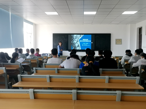 开讲前,同学们提前进入教室入座。讲座开始后,张冬梅首先向同学们展示个人简历,并向同学们介绍了自己从本科到硕士、博士等求学经历中专业知识方面发生的变化,为讲座增添了活跃的氛围。接着,张冬梅就“沥青材料现代分析测试方法”这一专题介绍了沥青材料、沥青老化等方面的研究,并给同学们展示相关材料,同时用简介易懂的语言讲述同学们暂未接触的专有名词,帮助同学们了解了更多关于沥青的知识。