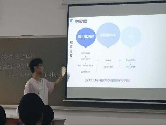 会前,工作人员引导同学们进行签到。会议开始,宣讲人介绍了首次申贷、续贷和还款相关知识以及诚信与个人征信知识,让同学们对申贷、续贷与还款的事项更加清晰,为同学们后续申请生源地助学贷款的操作提供了便利。接着,宣讲人用两个典型事例让同学们知晓了逾期未还款的不良后果以及按时还款的重要性。最后,同学们对宣讲内容进行提问,宣讲人对提出的问题耐心回答。