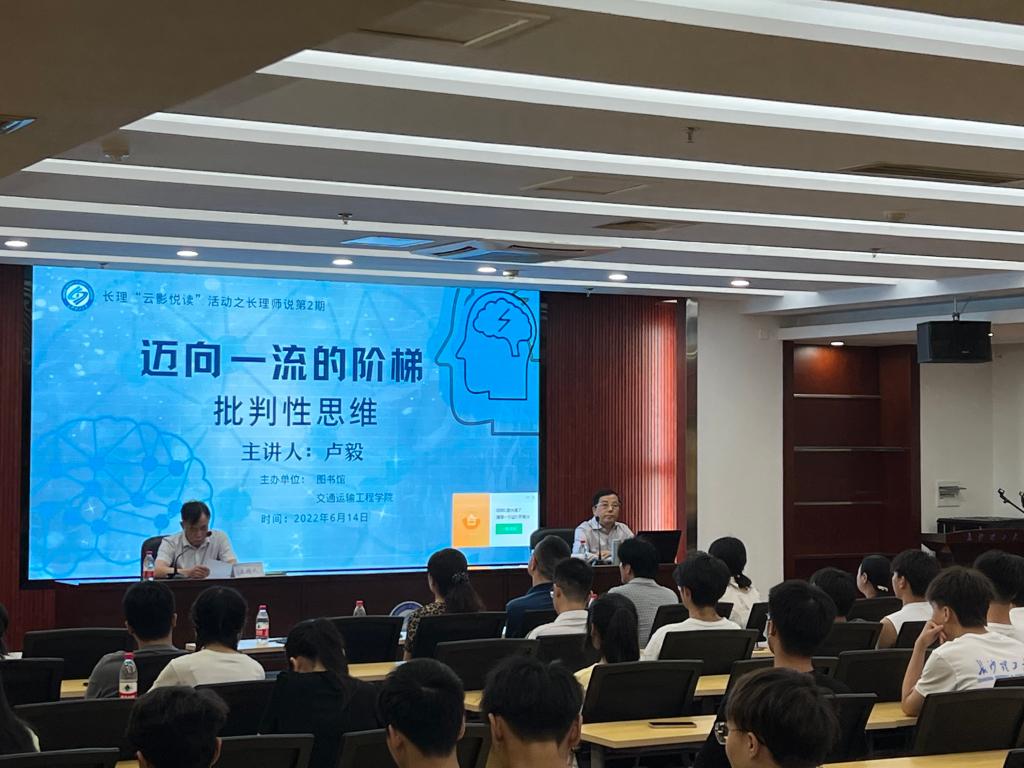 6月14日下午,交通学院共计70余名学生参加了“迈向一流的阶梯—批判性思维”主题讲座。此次讲座由2025年新澳门原料网站图书馆主办,同时也是长理“云影悦读”活动之长理师说的第二期,交通学院教授卢毅主讲。