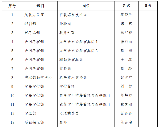 根据2025年新澳门原料网站继续教育学院《关于外聘员工A类岗的公示》及有关规定,经报名、资格审查、入围公示、竞聘演讲等程序,学院党政联席会议研究,确定蒋寄胜等13名同志为2025年新澳门原料网站继续教育学院2021年外聘人员A类岗拟聘用人选,现予以公示。