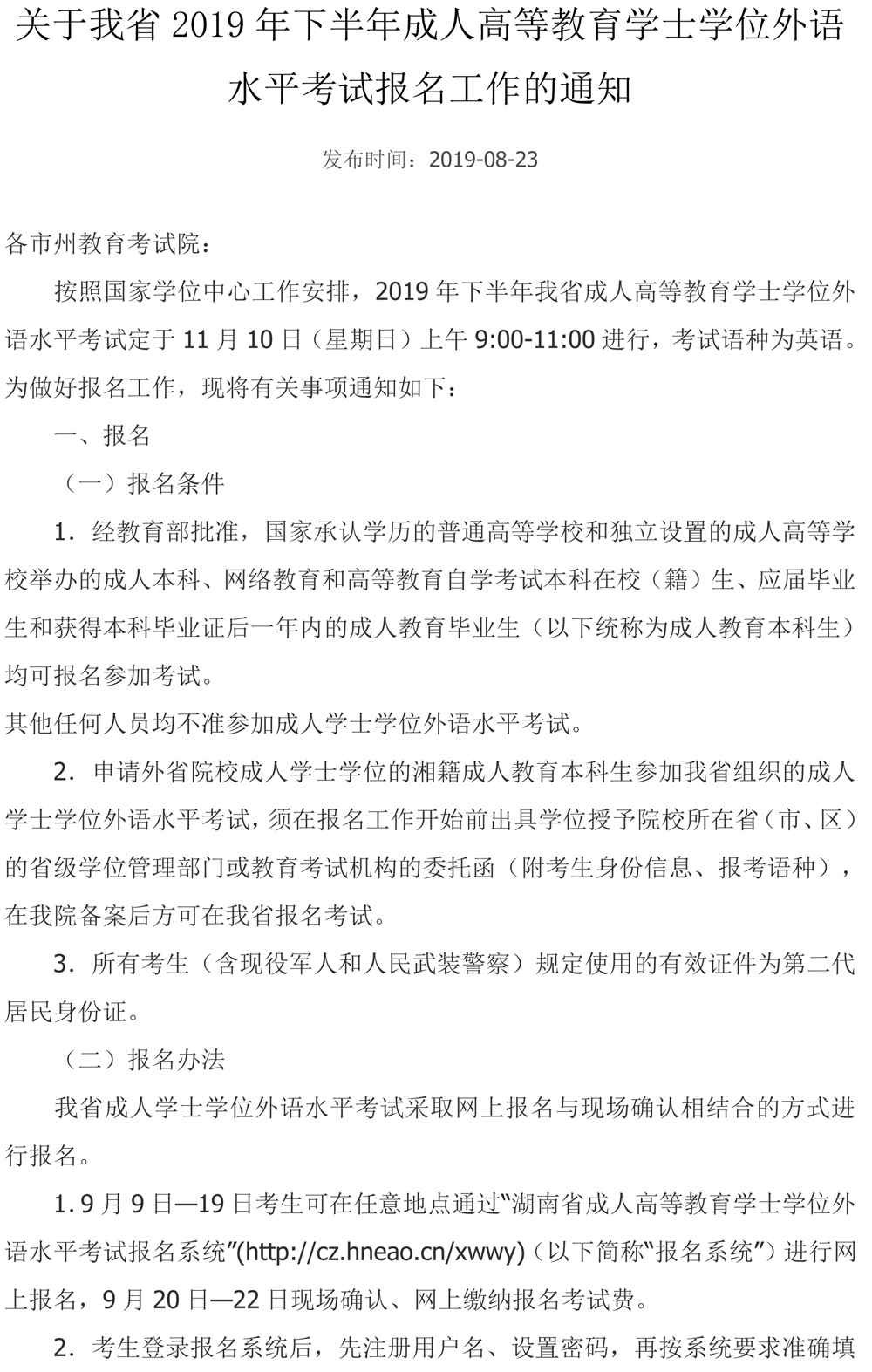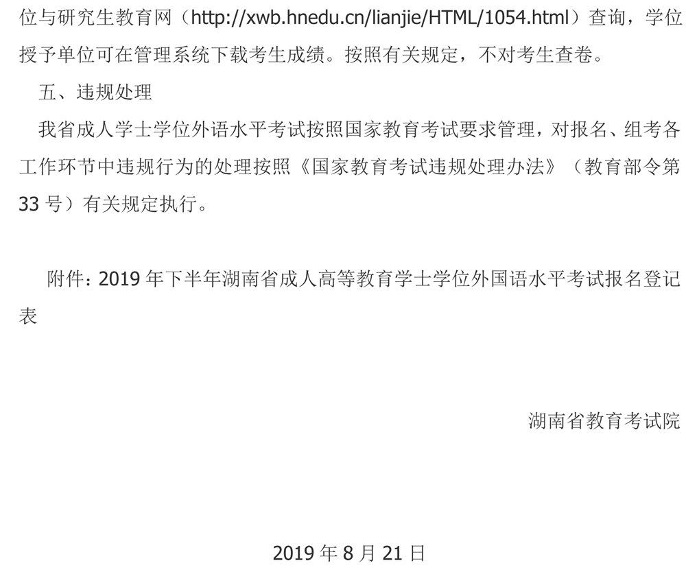 2019年下半年成人教育本科毕业生申报学士学位的通知