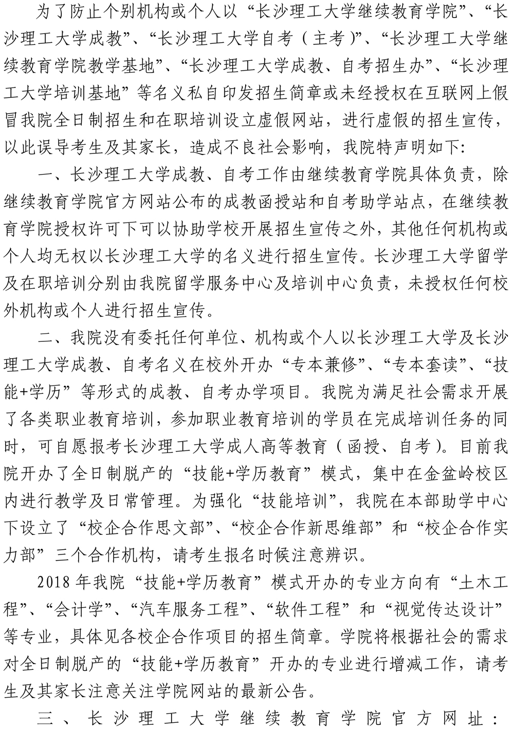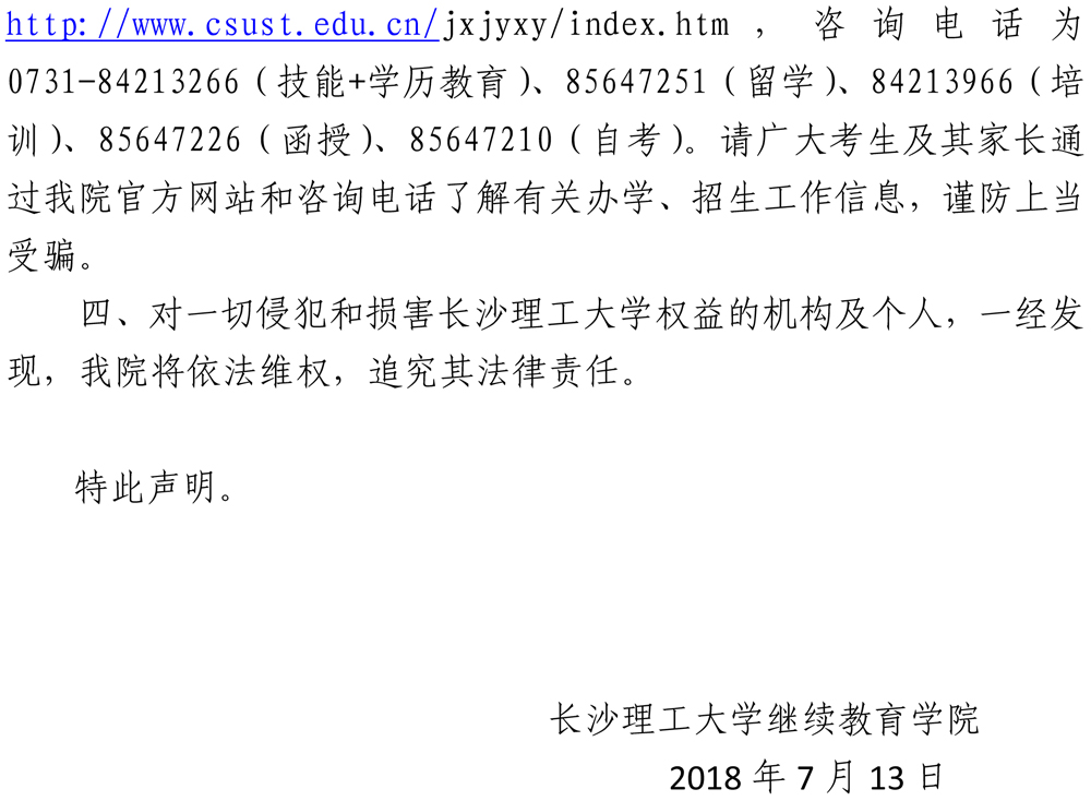 关于防止个别机构或个人假冒和盗用我院名义发布虚假成教、自考、留学及培训等招生信息的声明