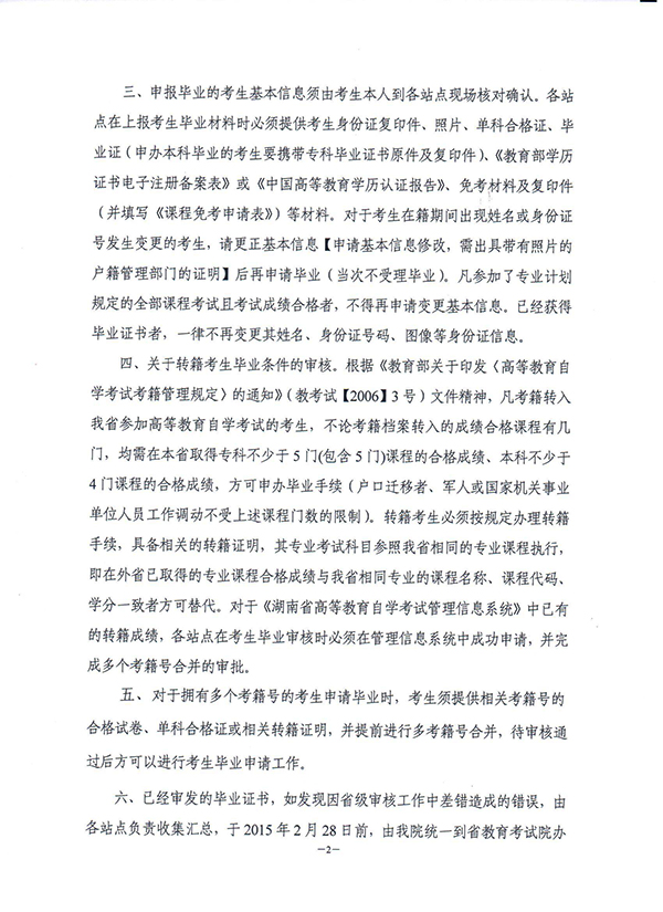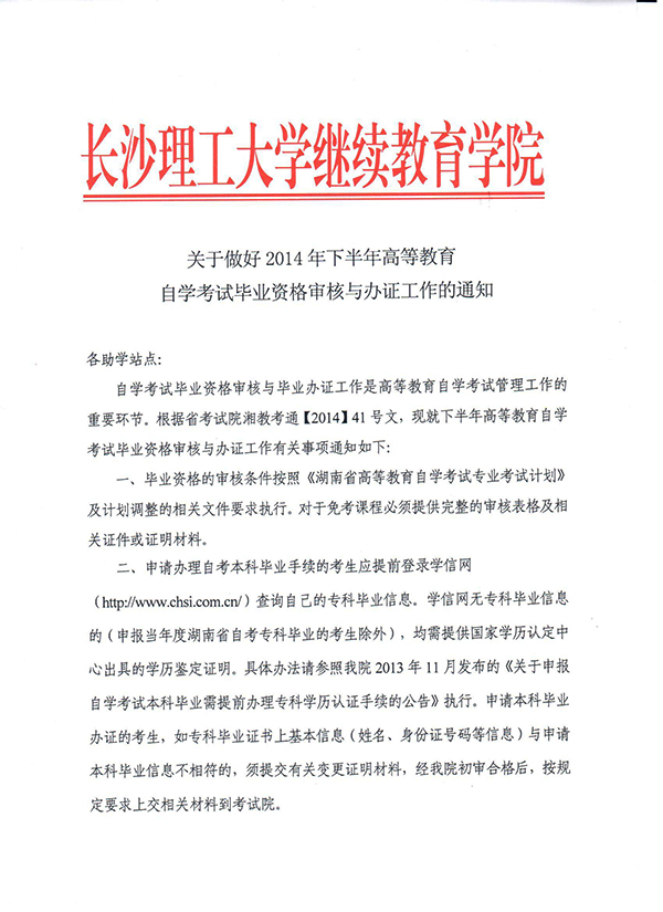 【湖南自考】关于做好2014年下半年高等教育自学考试毕业资格审核与办证工作的通知