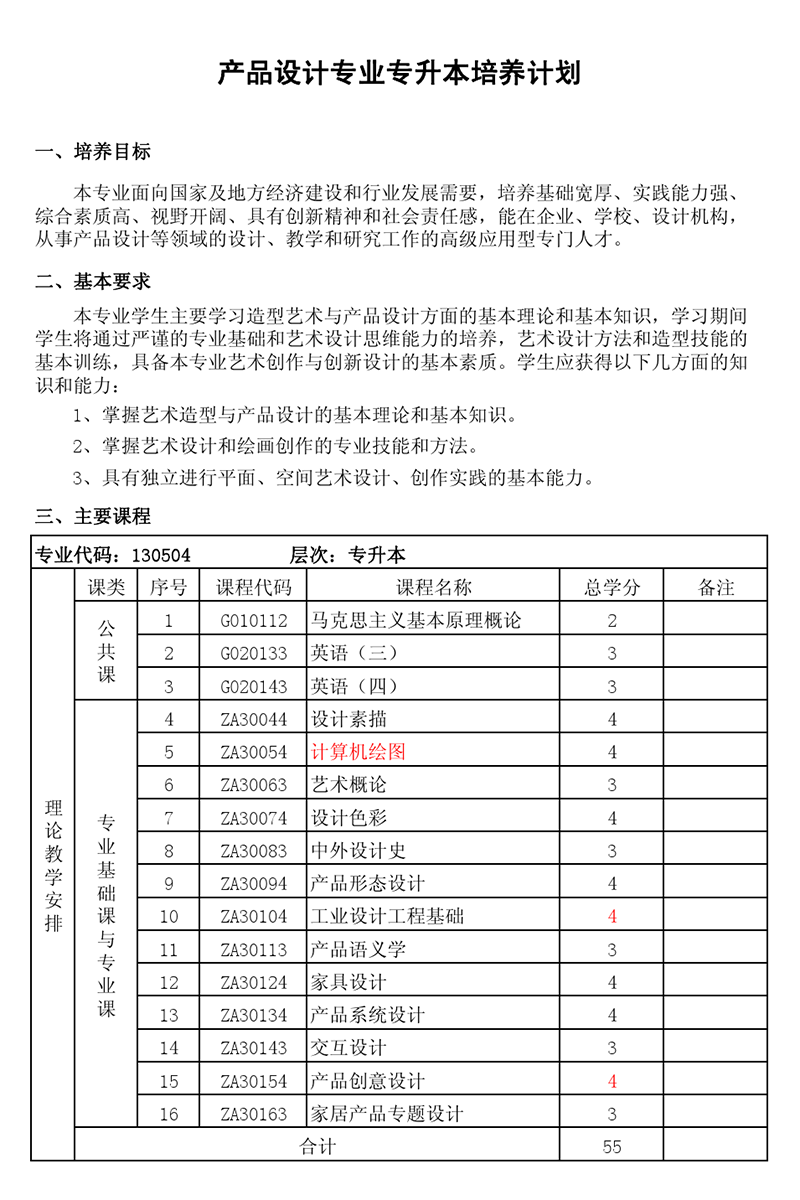 本科培养计划-专业代码:130504 产品设计专业