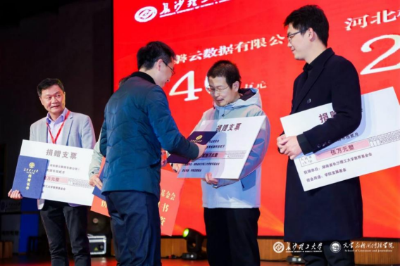 河北校友会捐赠了20万元,设立了冀湘奖学金。校友代表郭伦为获奖学生颁奖。