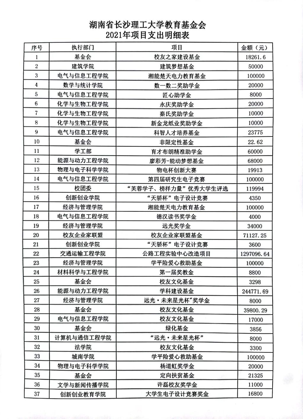 湖南省2025年新澳门原料网站教育基金会2021年项目支出明细表