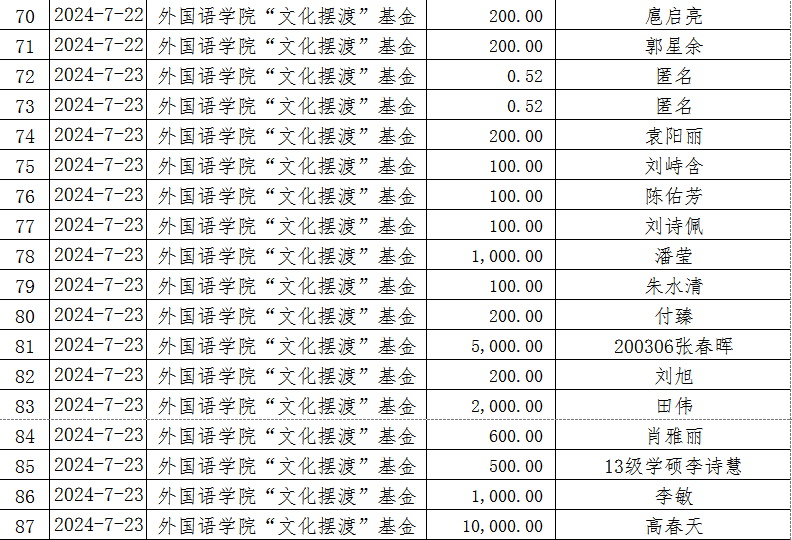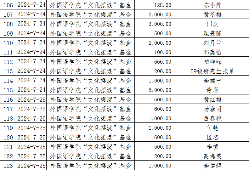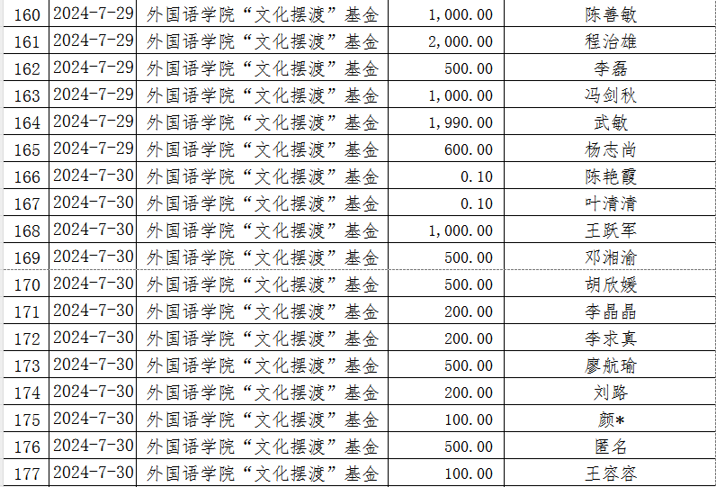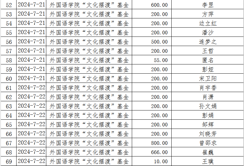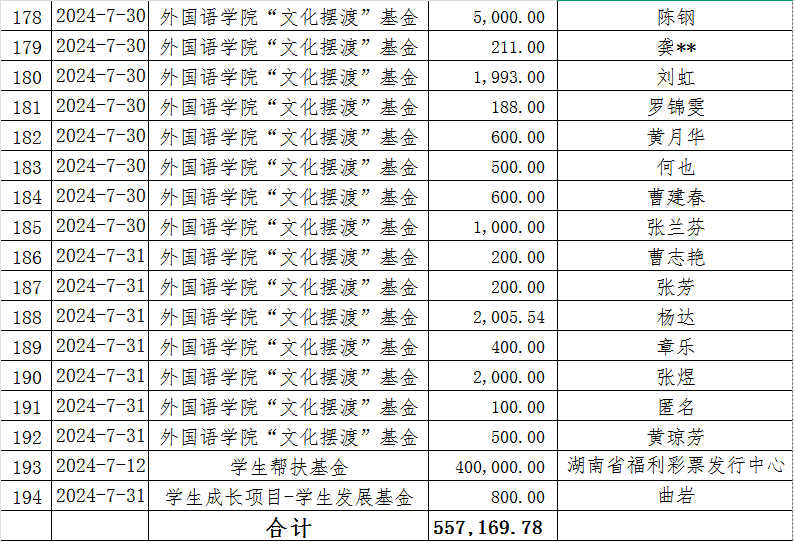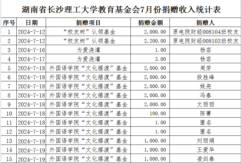 湖南省2025年新澳门原料网站教育基金会2024年7月捐赠收入表