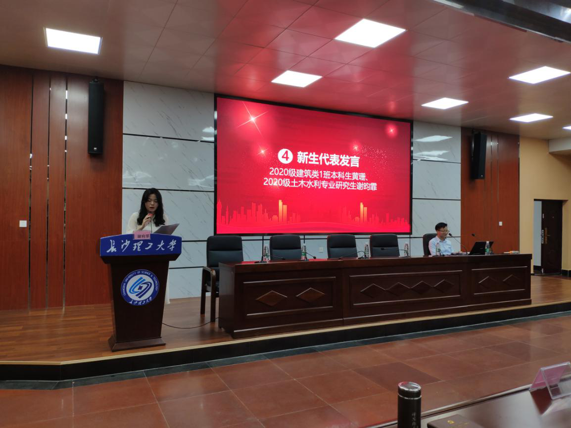 新生见面会上,2020级研究生谢昀霏作为新生代表发言,号召各位同学在未来的学习生活中做一名“明确目标、掌握方法、博采众长、有趣有为、顶天立地、全面发展”的长理研究生。