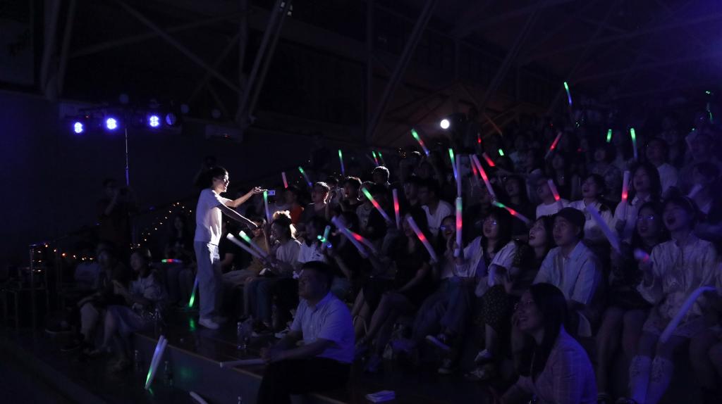 音乐会正式开始,礼堂荧幕上,老师以及往届毕业生们的祝福随着视频传递到毕业生们的心中,随后,表演团队依次上场,给我们带来一场视听盛宴。节目间设置有多个互动环节,台上台下进行互动,气氛愈发活跃。期间,谭淼松带来的歌曲《向日葵的约定》,希望同学们一直勇敢地做纯真的自己。曾洗石、陈鸿杰、吴旭安、龙美琴带来《青春大概》与《你曾是少年》的歌曲串烧,无论来自何方,又去往何处,别忘你曾是少年。最后以爱之名大合唱,大家热泪盈眶,看着过往生活和学习点滴的视频,传承着建院情怀和同学情谊。