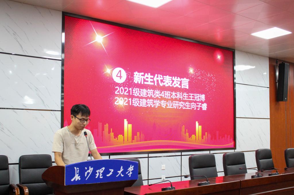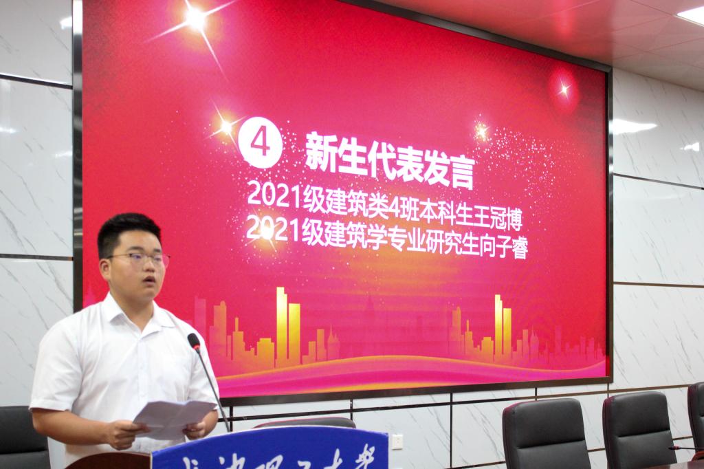 在新生见面会上,老生代表建筑类2001班学生黄珊分享了自己的经验,总结了自己的成绩。她鼓励同学们在新的人生征程中,提早计划,抓住机会,塑造全新的自己。新生代表2104班本科学生王冠博希望同学们能够抓住机会,立鸿鹄志,做奋斗者。新生代表21级研究生学生向子睿则强调了研究生学习要深入了解学科前沿,探求学科真相,体系定位,有的放矢。