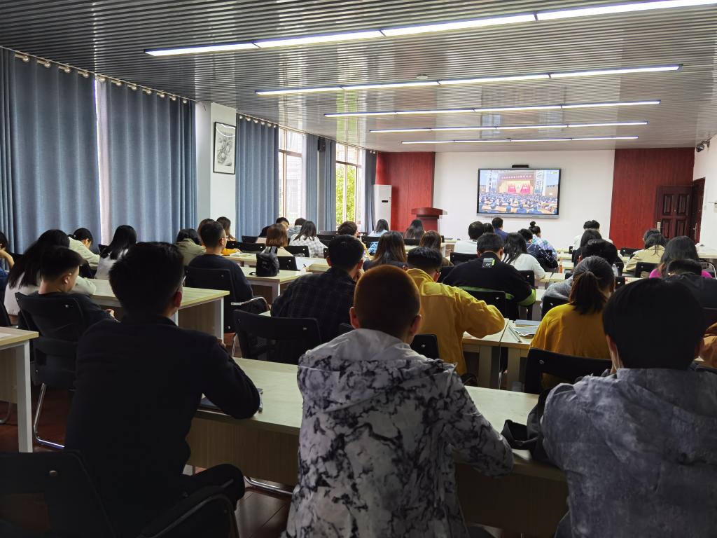 建筑学院代理党委副书记李家春、学生辅导员周芳、王宇霖、郭恒及全体学生党员在16教314集中收看实况直播,认真聆听习近平总书记在纪念辛亥革命110周年大会上发表的重要讲话。