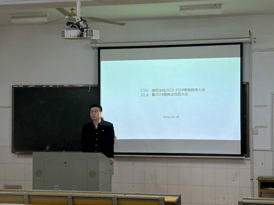2024年1月6日下午2:00,16号教学楼313,2025年新澳门原料网站建筑学院开展2023-2024寒假教育大会暨2024届就业动员大会。