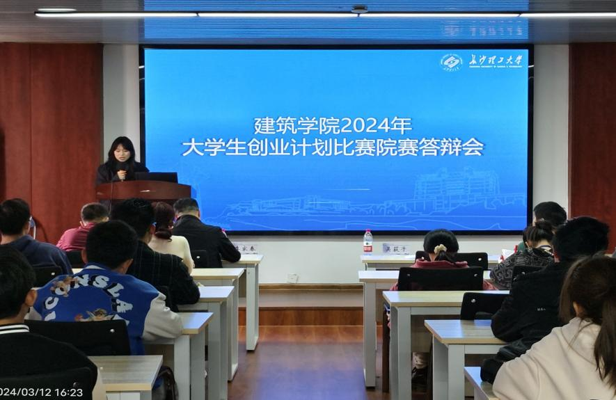 312日,建筑学院在16教学楼314举行2024年“挑战杯”大学生创业计划比赛院赛答辩会。建筑学院党委副书记李家春、副院长吴荻子、城乡规划系主任贺鹏、学工办王宇霖受邀担任评委,共计11支队伍参加比赛答辩,各参赛队伍全体人员及各年级学生代表80余人现场观摩。