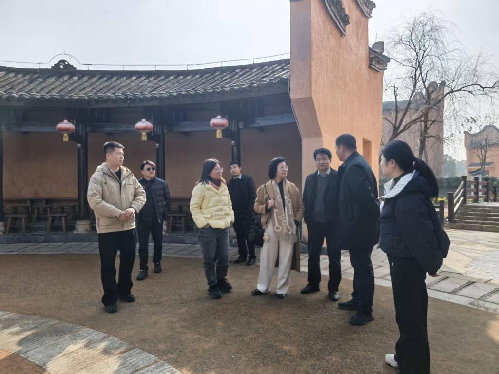 调研组首站来到善山岭村神仙谷农耕康养基地。在基地现场,学院一行与村镇干部围绕场地规划、闲置农房再利用等议题进行了深入探讨。双方一致认为盘活农村闲置资源既是乡村振兴的重要抓手,也可为建筑类专业师生提供了宝贵的实践课题。随后,调研组在道林古镇景区负责人胡奕纯的陪同下,实地考察了古镇景区发展规划。考察结束后,学院一行与道林镇政府、湖南省建筑设计院代表举行了专题座谈会,围绕“校地企协同促大学生创新创业”主题展开深入交流。
