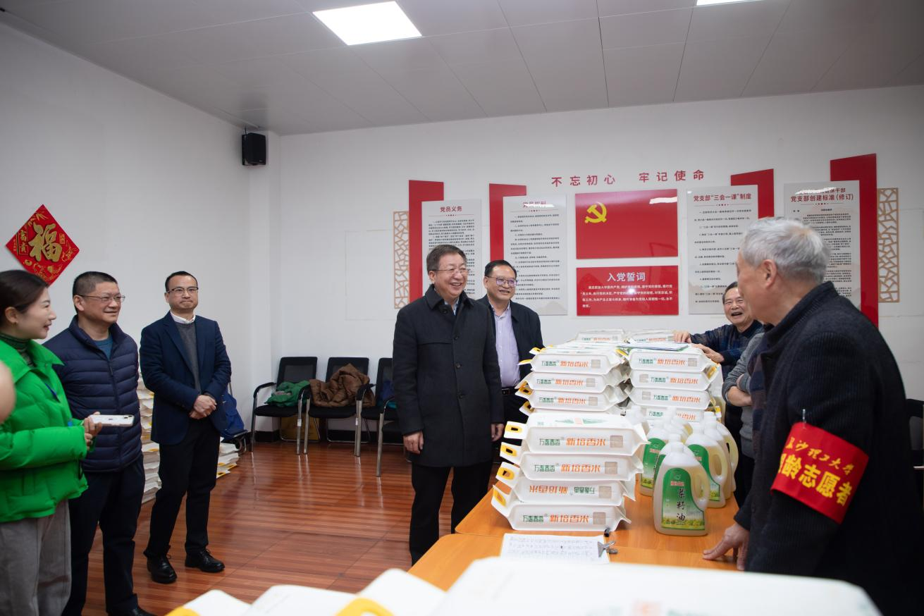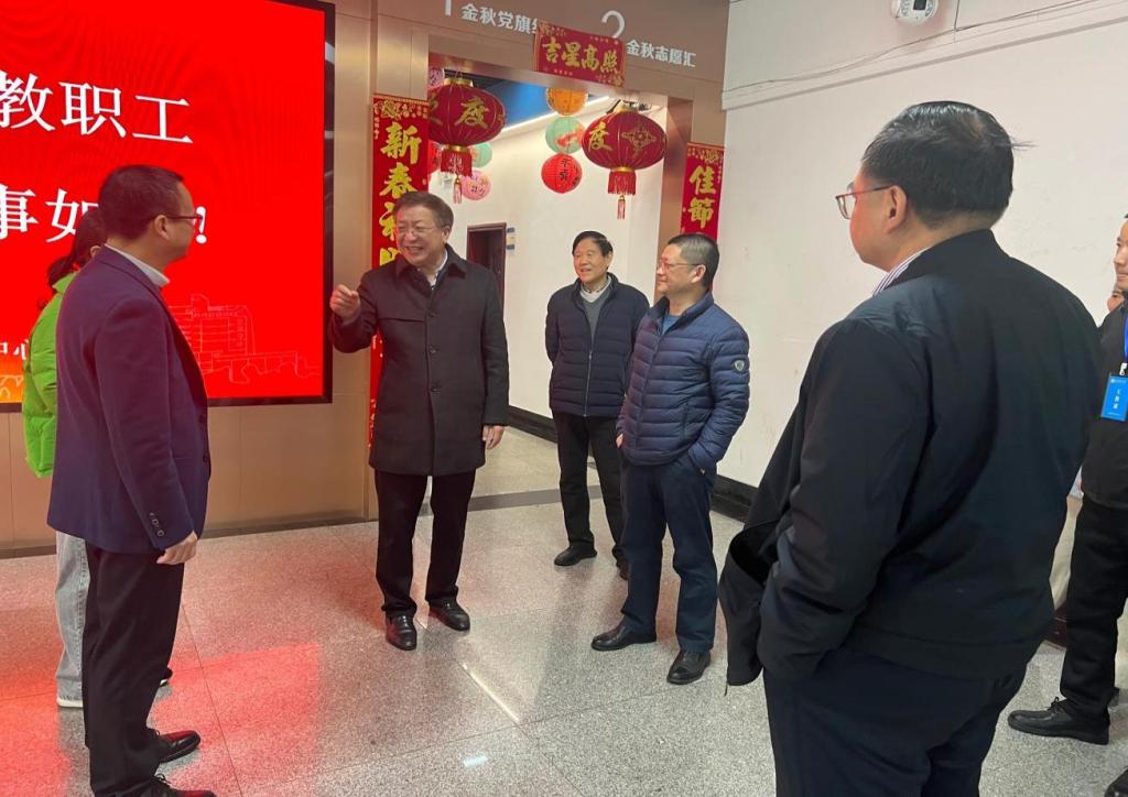 1月16日上午,学校党委书记付宏渊,校党委委员、副校长刘朝晖一行看望慰问广大离退休教职工,向老同志们致以节日问候和美好祝福,并参加学校2026年离退休教职工迎春游艺活动。