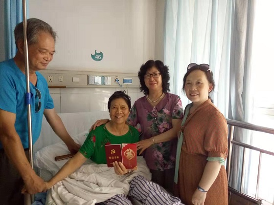 2019年7月15日下午,东区行政二支部一行3人,来到市三医院看望本支部在此住院的退休党员沈锦华老师。