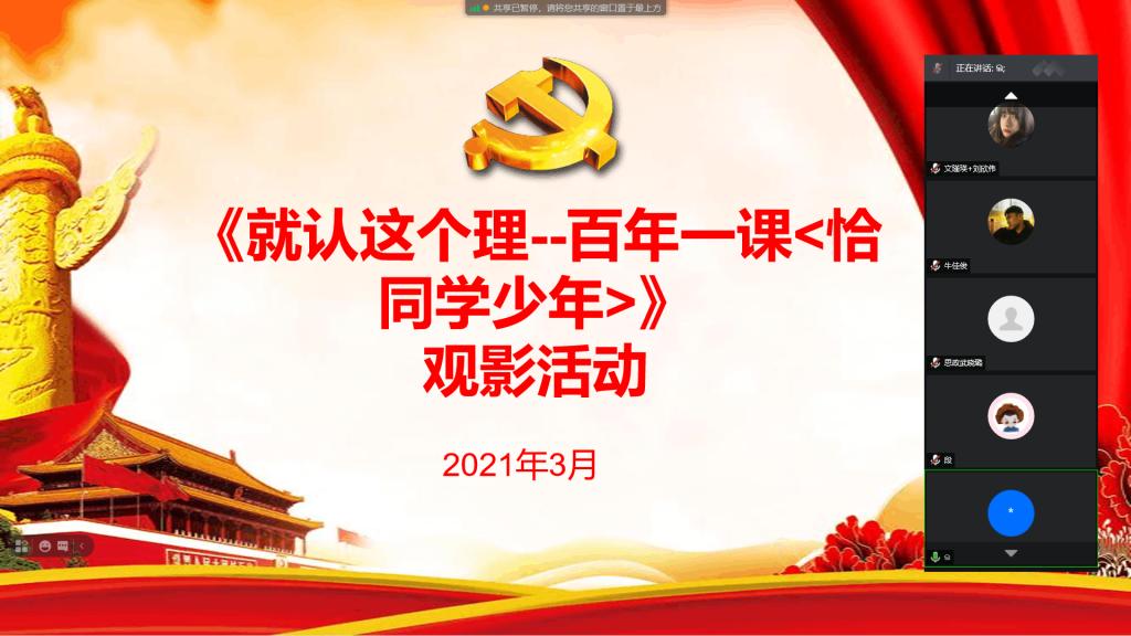 3月27日,马克思主义学院2019级研究生党支部收看《就认这个理——百年一课(恰同学少年)》系列节目并开展学习讨论,分享各自的观影心得,会议由党支部书记李袁远主持,全体党员以及预备党员参加。