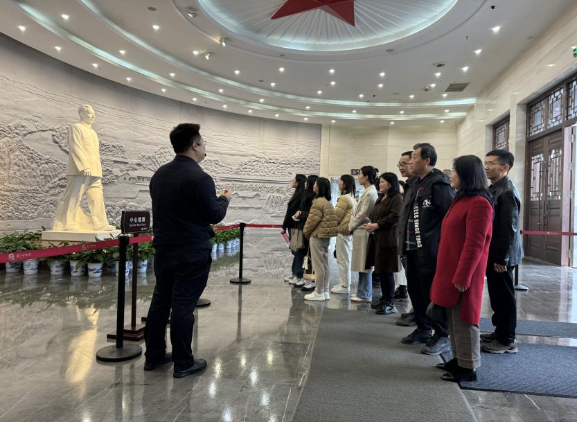 为进一步推动思政“小课堂”与社会“大课堂”相结合,不断开发优质教学资源,提升“大思政课”育人效果,共建“大思政课”实践教学基地,共同培根铸魂,3月16日,马克思主义学院赴刘少奇同志纪念馆开展“大思政课”结对行动暨思政课教师实践研学活动,学院纪委书记、组织员周展、副院长钟芙蓉、工会副主席邹新树参加。