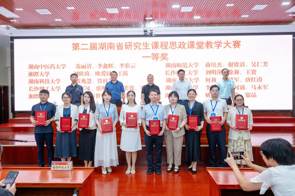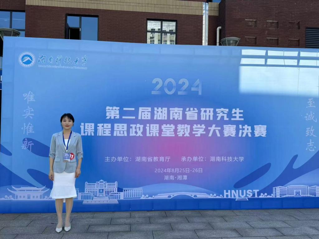 8月26日,第二届湖南省研究生课程思政课堂教学大赛决赛在湖南科技大学举行。经过网评、校内初赛复赛、决赛答辩等阶段的层层选拔,我校5个教师团队最终斩获3个一等奖,1个二等奖,1个三等奖,其中,我院卞军凤教师团队以丰富的课程思政元素、扎实的教学基本功、科学合理的教学设计和自然大方的教学风格,赢得评委的高度肯定,最终荣获人文社科类一等奖。