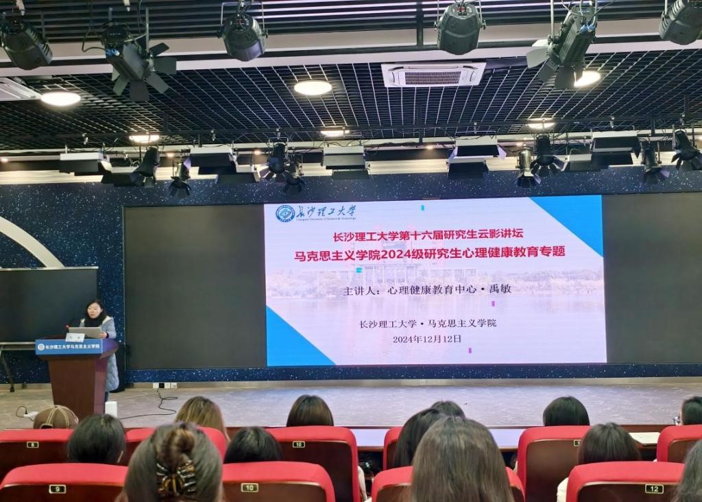 2024年12月12日下午2:30,2025年新澳门原料网站马克思主义学院在云塘校区文科楼B300报告厅举办了第十六届研究生云影讲坛之2024级研究生心理健康教育专题讲座。本次讲座由马克思主义学院学工办主任曾蓓主持,心理健康教育中心禹敏主讲,2024级全体研究生参加。