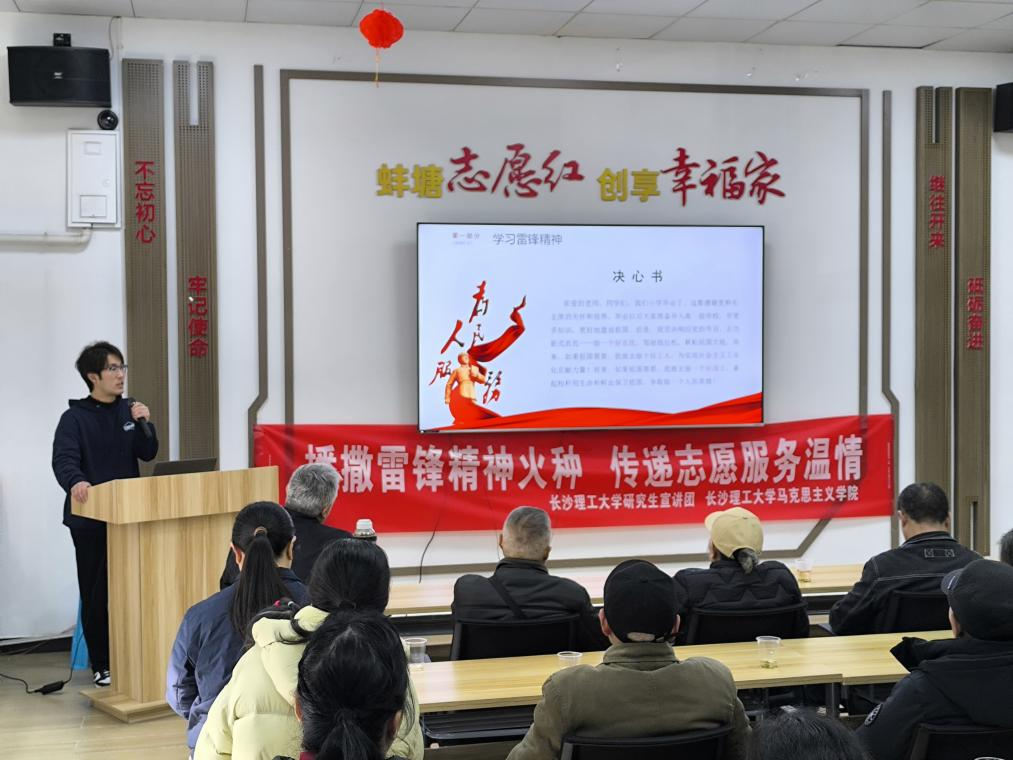 3月16日,2025年新澳门原料网站研究生宣讲团走进长沙市蚌塘社区,与社区第二党支部联合举办“撒播雷锋精神火种 传递志愿服务温情”主题活动。通过情景剧演绎、雷锋精神宣讲与实践分享三大环节,深化校社联动志愿服务新路径。