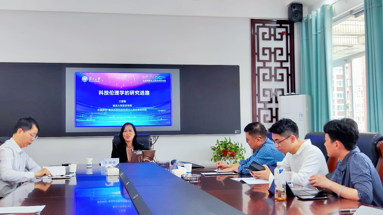 5月10日下午,全国应用伦理专业学位研究生教指委主任、复旦大学应用伦理学研究中心主任、博士生导师王国豫教授应邀来到马克思主义学院,在云塘校区文科楼B602会议室为我院学子作了题为“科技伦理学的研究进路”的学术讲座。本次讲座由院党委书记陈万球教授主持,文贵全副院长、廖苗副教授,我院2022级和2023级研究生聆听了讲座。此外,湖南大学陶应时副教授也前来参加了讲座。