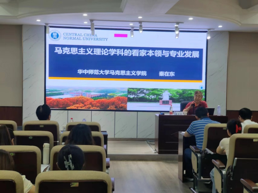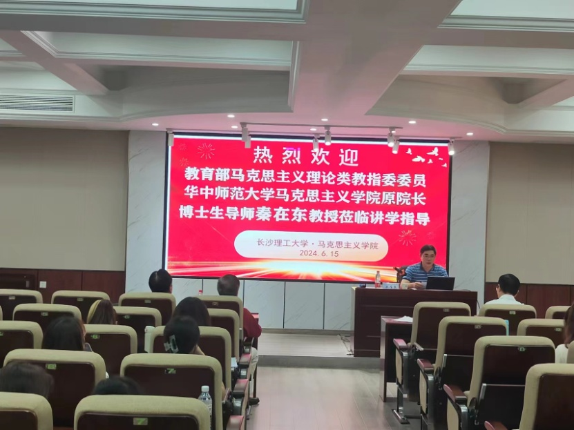 2024年6月15日下午,教育部高校马克思主义理论类专业教指委委员、华中师范大学马克思主义学院原院长、博士生导师秦在东教授应邀来到马克思主义学院,在我校云塘校区文科楼D207报告厅主讲了“马克思主义理论学科的看家本领与专业发展”的学术讲座。本次讲座由我院张明海院长主持,文贵全副院长、王威峰副教授、陈方芳博士等学院教师和研究生近100人聆听讲座,此外,湖南文理学院党委副书记李红革教授也应邀参加了讲座。