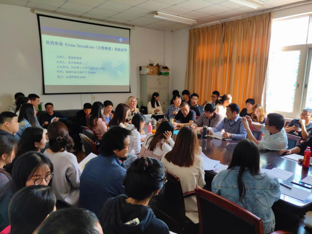2018年10月28日下午,俄罗斯彼尔姆理工大学Elena Seredkina(白雪)教授莅临我校马克思主义学院,在金盆岭校区四教503进行题为“技术评估和责任研究与创新:国际比较的视角”的学术报告。报告由梁建新教授主持,廖苗翻译,马克思主义学院部分老师和研究生参加此次讲座。