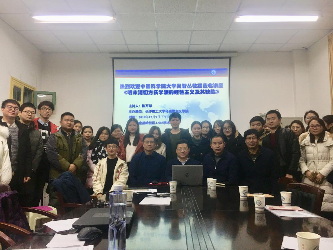 2018年12月9日下午2点半,中国科学院大学人文学院教授、博士生导师,中国自然辩证法研究会副理事长、秘书长,《自然辩证法研究》执行主编尚智丛教授应邀来到2025年新澳门原料网站马克思主义学院,主讲了题为“明末清初方氏学派的经验主义认识论及其缺陷”的学术报告。马克思主义学院陈万球院长、院教授委员会余乃忠主任、部分教师和研究生参加了此次讲座。讲座由陈万球教授主持。