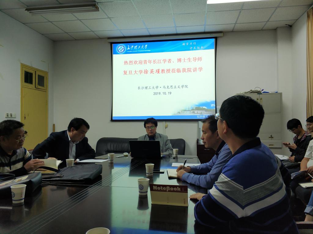 2019年10月19日晚,复旦大学博士生导师徐英瑾教授应邀莅临马克思主义学院,在我校金盆岭校区4-503会议室作了题为“人工智能研究并不是你想的那样”的学术讲座。学院党委易显飞书记、陈万球院长,院教授委员会主任余乃忠教授,蒋显荣副教授、邓治文副教授等学院部分教师、研究生聆听讲座,讲座由陈万球教授主持。