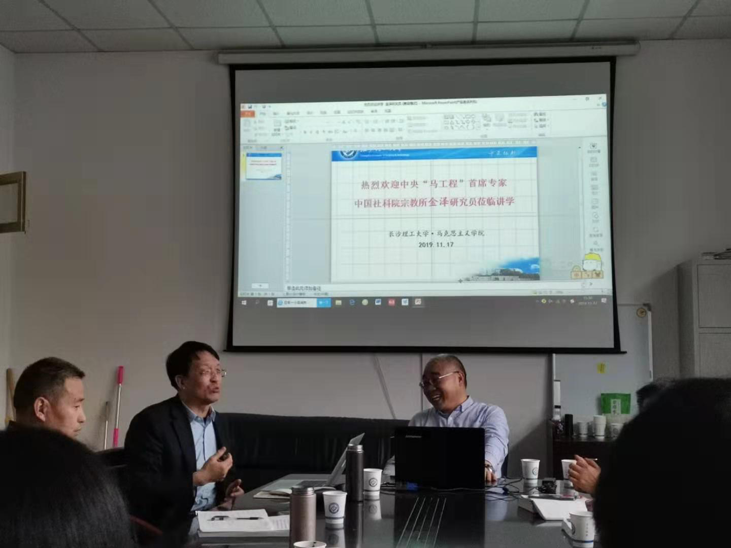 2019年11月17日下午,中央“马工程”宗教学首席专家、中国宗教学会原副会长兼秘书长、中国社科院世界宗教所研究员、中国社科院研究生院宗教学系原主任金泽教授应马克思主义学院邀请,在我校金盆岭校区4-503室作了题为“宗教与法治”的学术讲座。马克思主义学院教授委员会余乃忠主任,陆群教授、文贵全博士、陈峰博士等部分教师和学院研究生参加了讲座,中南大学于丽娜博士、胡蓉博士、凌昊天博士等校外人员也参加了讲座。本次讲座由余乃忠教授主持。