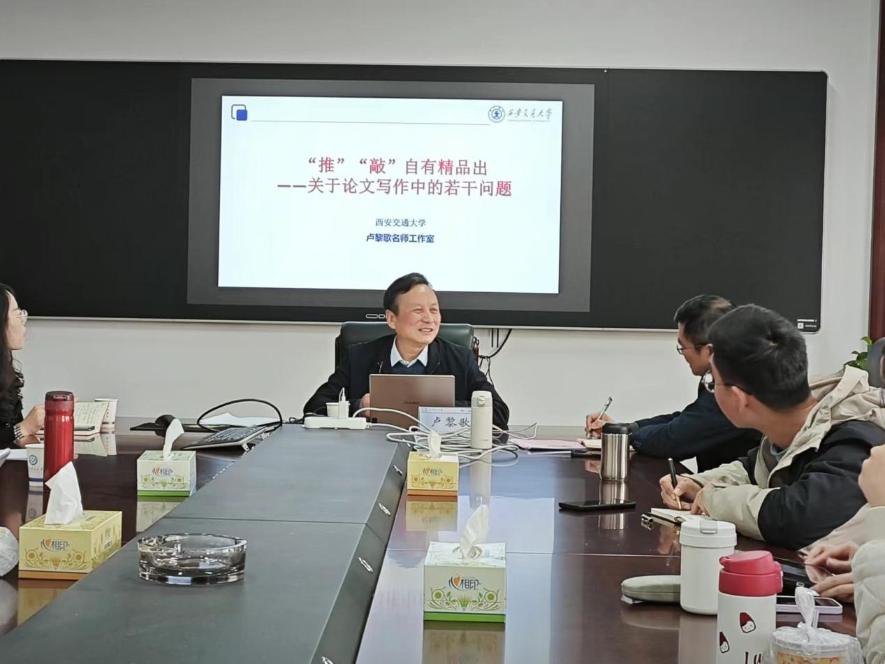 2023年3月28日上午,中央“马工程”首批专家组成员、国家教学名师、西安交通大学博士生导师卢黎歌教授应邀来到我校云塘校区马克思主义学院,为学院师生作了一场名为“‘推’‘敲’自有精品出——关于论文写作中的若干问题”的学术讲座。院党委书记陈万球教授、李雨燕副院长、董艾辉教授、高小枚副教授、文贵全副教授等学院教师和研究生共40余人参加了此次讲座,讲座由陈万球教授主持。