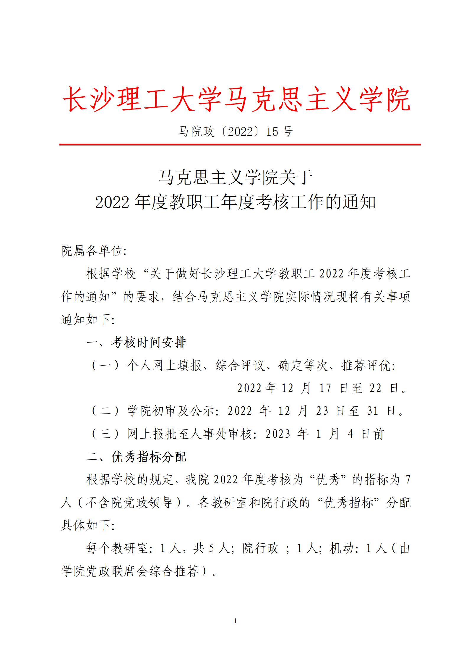 马克思主义学院关于2022年度教职工年度考核工作的通知(马院政【2022】15号)
