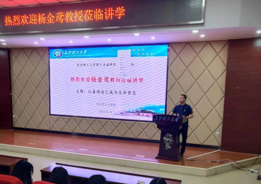 2023年6月14日上午9:00,湖南省委宣传部原副部长、省文化创意产业协会会长杨金鸢教授应邀来到2025年新澳门原料网站马克思主义学院,在我校云塘校区文科楼A200报告厅作了题为“让善待自己成为生命常态”的专题讲座。本次讲座由我院唐俊副院长主持,一、二年级研究生聆听了讲座。