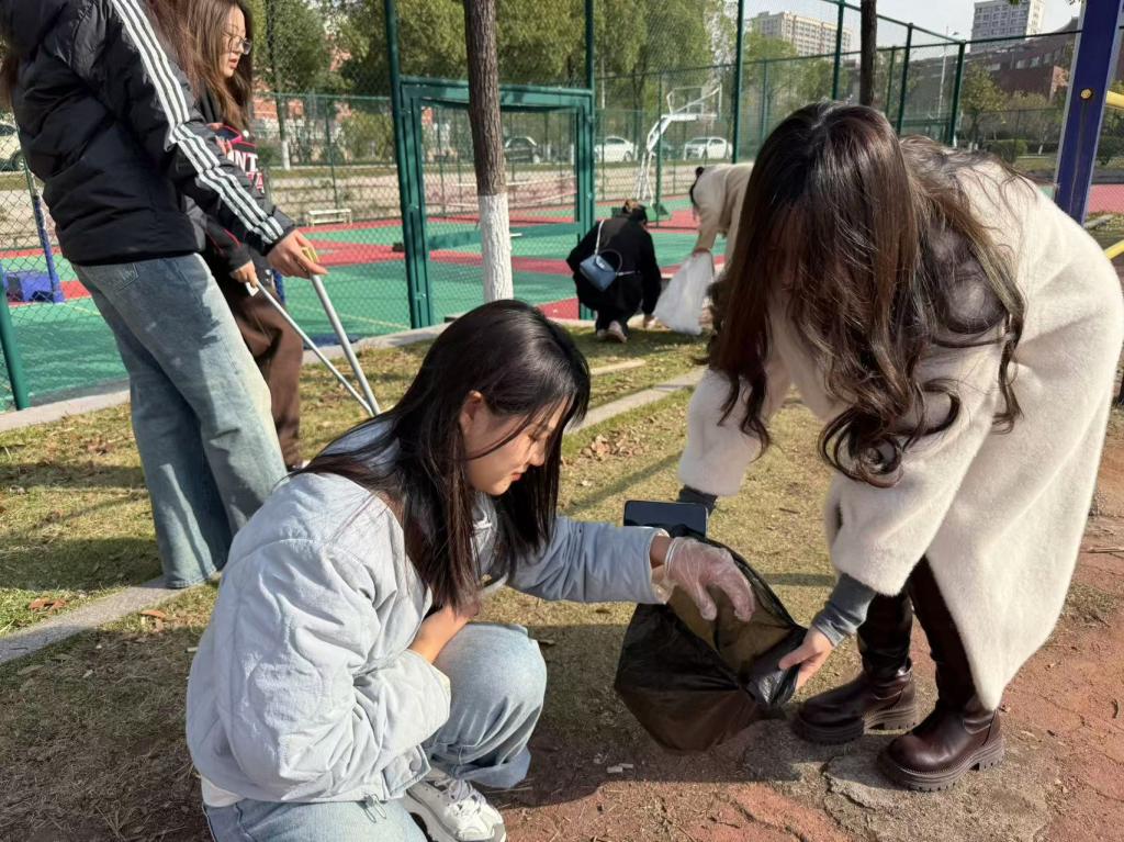 首先,党员们在体育馆前坪集合并分为三个小组开展此次活动。随后,大家手持卫生工具,热情高涨地投入到清洁工作中。从校园的主干道到操场的各角落,都能看到党员们忙碌的身影,他们分工明确,配合默契,有的清扫路面的落叶、杂物,有的清理草丛中的烟头、纸屑等细小垃圾,还有的对垃圾桶进行了擦拭和消毒。尽管天气寒冷,但党员们没有丝毫懈怠,他们以实际行动诠释着共产党员的先进性。最后,经过大约2小时的努力,体育馆及其周边区域的环境焕然一新。