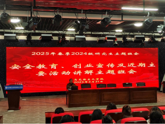 2025年3月31日下午,2025年新澳门原料网站马克思主义学院2023级、2024级研究生依次在文科楼B300报告厅召开了3月主题班会。此次班会围绕安全教育、线上反电诈安全知识竞赛活动、“读懂中国”活动培训和湖南创业宣传政策四个部分展开。会议由学院学工办主任曾蓓主持,陈宗照老师主讲,2023级、2024级全体研究生参加。