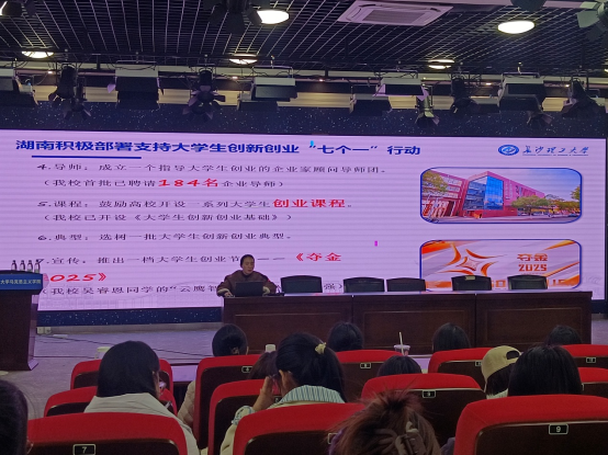 最后,在创新创业问题上,曾老师从政策扶持、基金助力、孵化培育、导师指导、课程体系、典型引领和宣传推广七个维度,介绍了湖南省为支持大学生创新创业所开展的系统性工作,为同学们描绘出一幅清晰的创新创业政策与服务全景图,助力同学们在未来的创新创业之路上行稳致远。