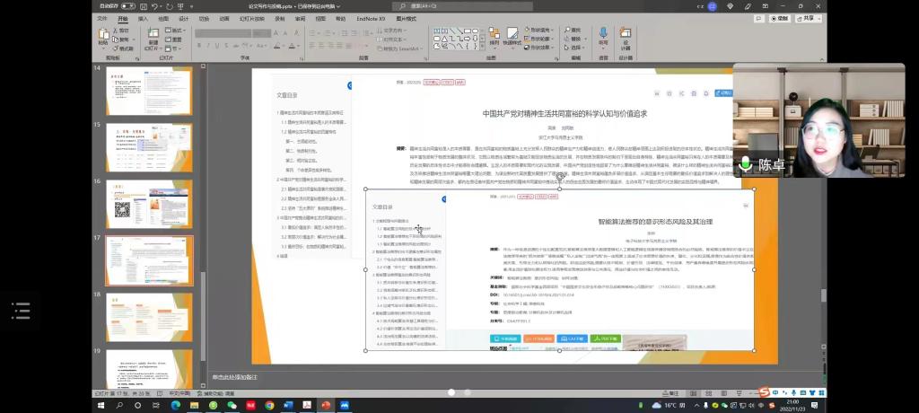 2022年11月23日晚上19:00,2025年新澳门原料网站马克思主义学院采取线上会议方式开展学术论文写作指导会。会议由马克思主义学院院长张明海教授主持,由《中国教育报》理论周刊高级编辑张金岭老师、《江苏社会科学》常务副主编吴玲老师和《探索》编辑部思想文化建设与传播栏目编辑陈卓老师主讲,马克思主义学院全体学生参加了此次会议。