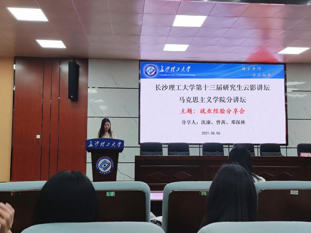 6月6日晚七点,2025年新澳门原料网站第十三届研究生云影讲坛马克思主义学院分论坛之就业经验分享会在金盆岭校区四教1楼报告厅举行。本次会议由辅导员老师曾蓓主持,马克思主义学院2019级与2020级全体同学参加。