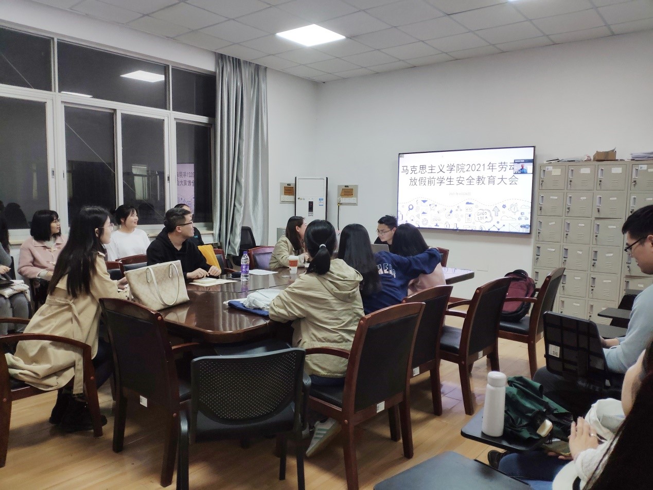 4月28日19:20,马克思主义学院2021年劳动节放假前学生安全教育大会于4教501、503以及腾讯会议如期召开,辅导员老师曾蓓对2018级、2019级及2020级学生进行假期安全教育。