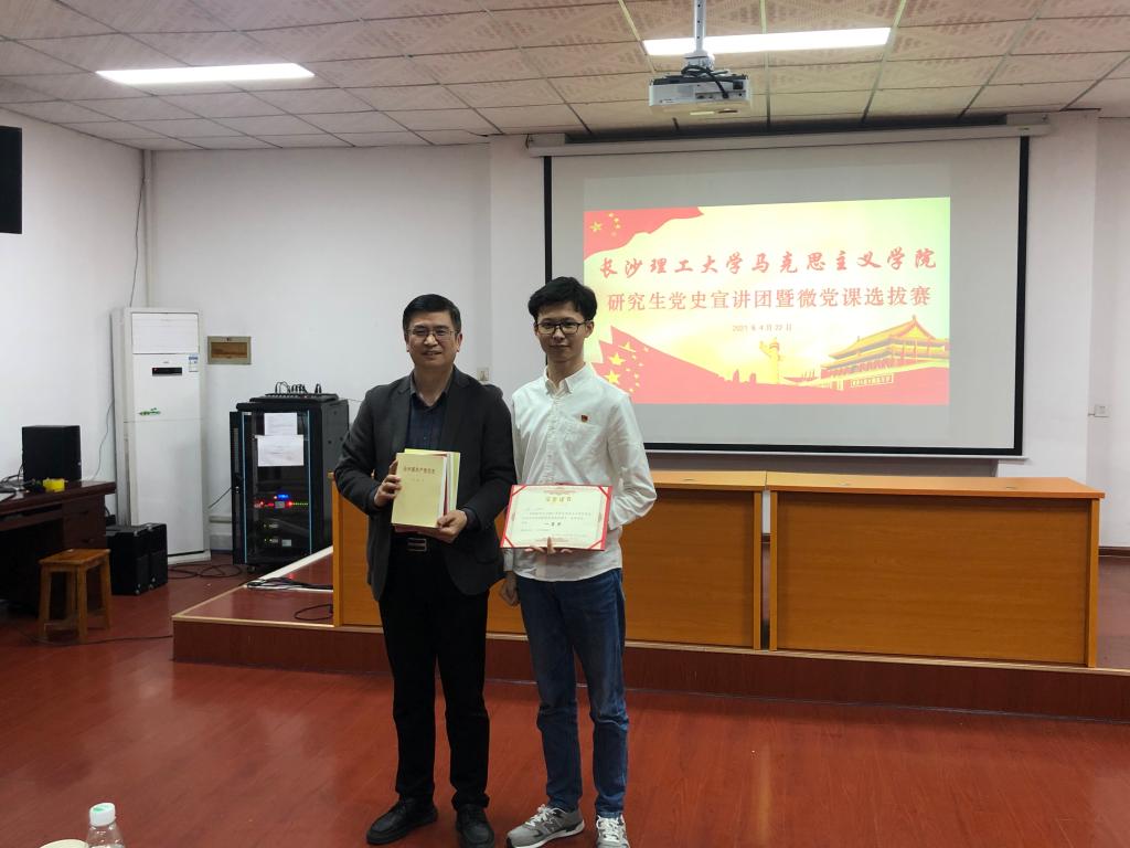 为庆祝中国共产党成立100周年,积极响应党中央号召,选拔优质研究生党史宣讲力量,马克思主义学院于4月22日晚7:00在金盆岭校区2教101报告厅举行了研究生党史宣讲团暨微党课选拔赛。此次比赛由陈万球院长、赖某深副教授、钟芙蓉老师、陈方芳老师、王威峰老师和曾蓓老师担任评委,2020级党员邓丽伶主持,2020级全体研究生和2018、2019级部分研究生参加。