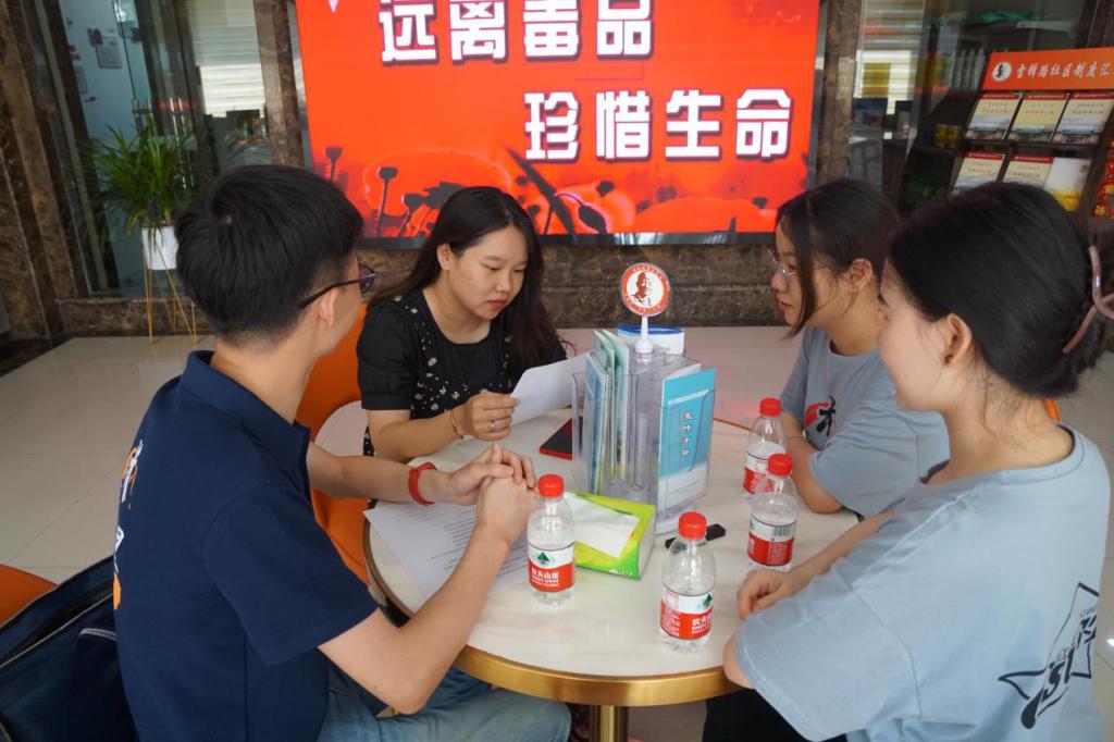 7月28日上午9点,实践团成员抵达雷锋路社区,社区新时代文明实践站负责人朱旖旎对实践团的到来表示欢迎,并向成员们介绍了阵地建设的基本情况,以及近年来举办活动的开展情况和取得的成效。首先,朱旖旎热情带领成员们参观了雷锋路社区相关的户外阵地场所。在雷锋故事墙绘、金种子广场、雷锋驿站等地,成员们围绕调动居民参与文化活动的积极性、开展志愿服务评比的实际做法等相关内容向朱旖旎详细询问,并深入请教相关心得经验,也提出了自己的思考感悟。其次,在社区公共服务中心,成员们参观了雷锋慈善超市、市民学校等场所并在一楼大厅发放了调查问卷。在冯正爹工作室内,成员钟雅琦对当地利用特色名片,助推文明实践深入思考并收集了相关现场资料。