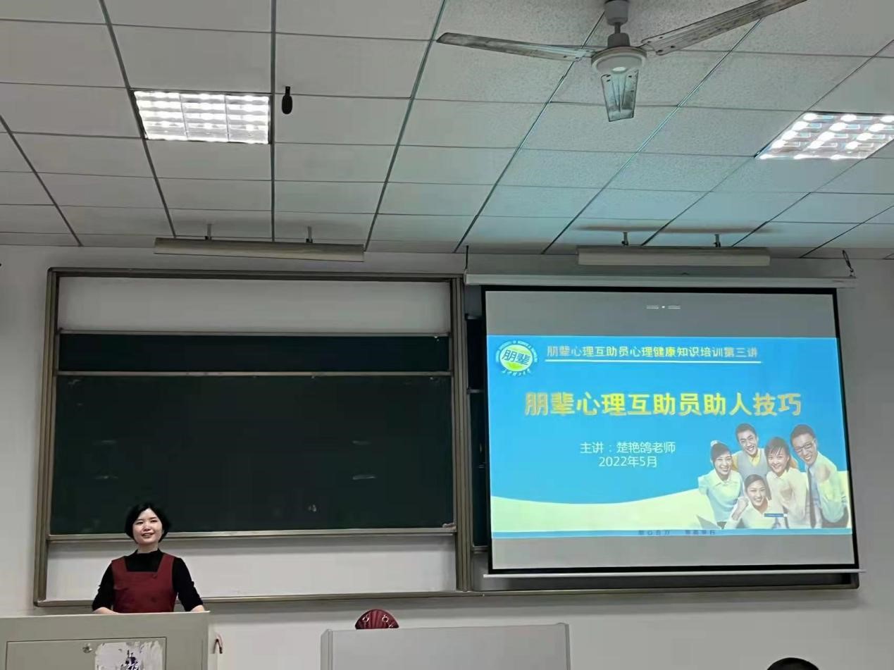 5月23日晚七点,马克思主义学院心理朋辈互助员第三次培训在金盆岭校区6教108举行,培训会由文学与新闻传播学院心理辅导员楚艳鸽老师主讲,由马克思主义学院、法学院、文学与新闻传播学院及化工学院的朋辈互助员参加。
