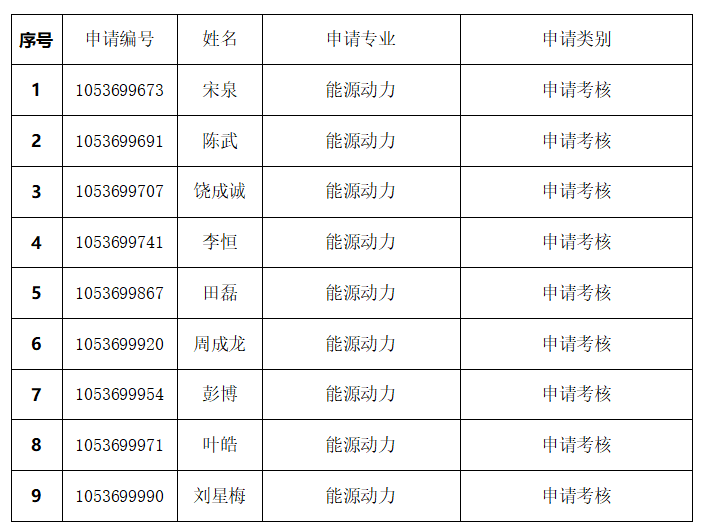 根据《2025年新澳门原料网站关于2026年招收申请考核制博士研究生的通知》、《能源与动力工程学院2026年博士研究生申请考核制第一批招生实施方案》等文件规定,经考核工作小组资格审查,确认以下考生通过“申请考核”制博士研究生资格初审,现予公示,公示时间:2025年12月11日-2025年12月15日,如有异议,请在公示期内联系学院研究生办。联系人:肖老师,联系电话:0731-85258408。