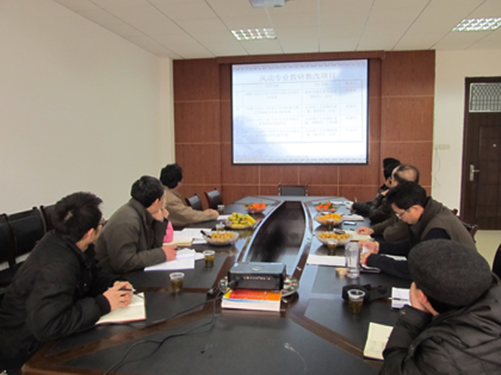 首先,学院新能源系系主任何建军介绍了“风能与动力工程”专业建设和发展现状,详细汇报了新专业开办以来教学、教研教改、科研、学科与平台建设、专业实习等方面情况,以及专业建设目前存在的问题和解决措施。