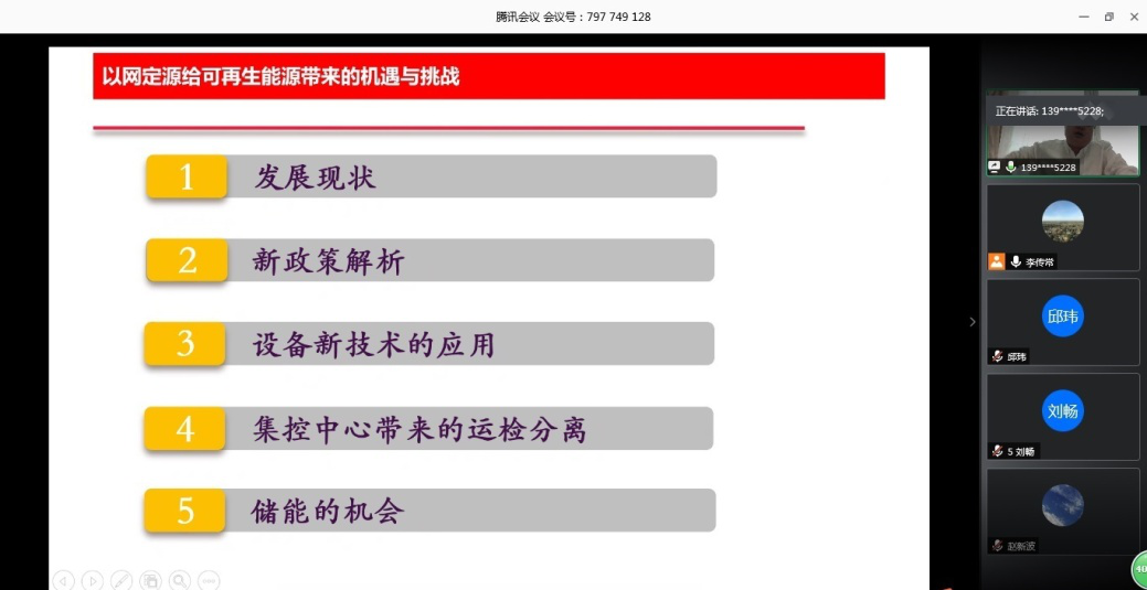优秀校友江西大唐国际新能源公司风电场运行值长汤秒主讲内容为风电场升压站高压开关介绍及控制原理。汤秒对风电场主接线图进行详细介绍,并结合自身工作经历说明了风电场注意事项,最后对同学们咨询风电场生活方面的问题一一作出解答。