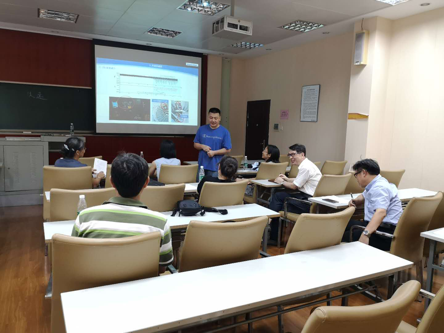 首先,胡章茂老师试讲了一个经过第二轮修改后的知识点。接着,专家们从课件制作、讲解技巧等方面提出了一系列详细的意见和建议。最后,各个专家又与胡章茂老师进行了深入的讨论和交流。